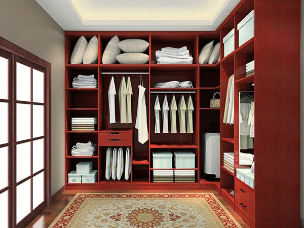 三、收納功能強;衣帽間的壁柜不要采用開放形式,所有的衣服都暴露在外面,很輕易雜亂無章,一片散亂。因此,在設計時分割要公道,在隔板之前,充分利用主人所放物體的尺寸大小,包括長、體與重量等。