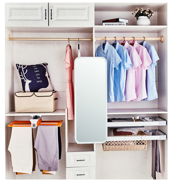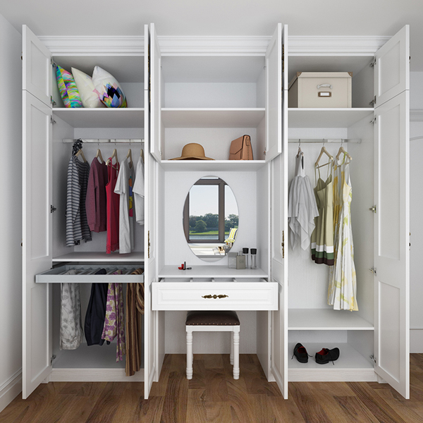 3、衣柜+梳妝臺:組合式設計輕松滿足衣物收納、梳妝功能。