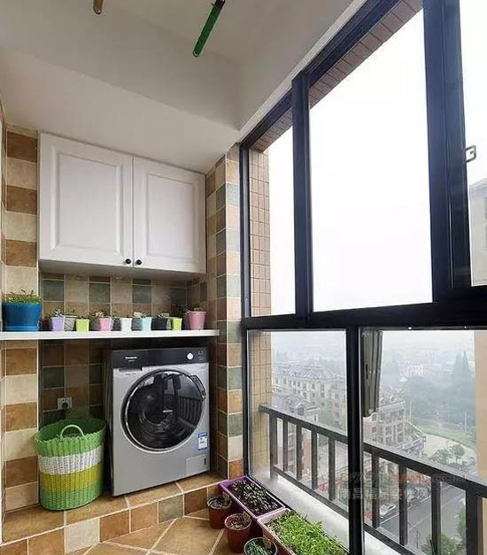 一、陽臺變洗衣+收納功能房當家里的洗手間空間比較小,沒法滿足日常洗衣功能時,可以把陽臺設計成洗衣+晾曬+收納+置物的多功能空間。合理劃的設計,不僅美觀,而且更加實用。陽臺一角可以量身打制洗衣柜安置洗衣機,多余的空間還能隨心設計,無論是擺放休閑桌椅還是栽種花草都是不錯的選擇。