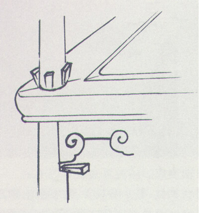 桌掛銷(圖)亦稱偏口掛銷。這種掛銷是明清硬木桌類家具腿部與牙板結合部必用的結構。其牢固程度高,不會丟失,配合“抱肓榫”,有較強的抗扭力。桌掛銷有定位準確、可反復拆裝、越打越嚴的特點,便于長途運輸,是蘇、廣及宮廷造辦處硬木桌子上必用的銷子。