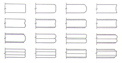 邊抹線腳舉例(上下對稱)(圖)傳統家具的線腳看似簡單,不外乎“平面”或“混面”及“凹面”;線條也不外乎陰線與陽線。但仔細分析其深淺寬窄、舒斂緊緩、平扁高立,相當復雜,稍有改變,就會影響到整個家具的精神面貌。