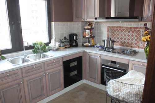 小戶型廚房可以選擇緊湊型櫥柜,根據(jù)需要進(jìn)行組合疊放,節(jié)省空間。把柜門換成透明玻璃,方便查找。